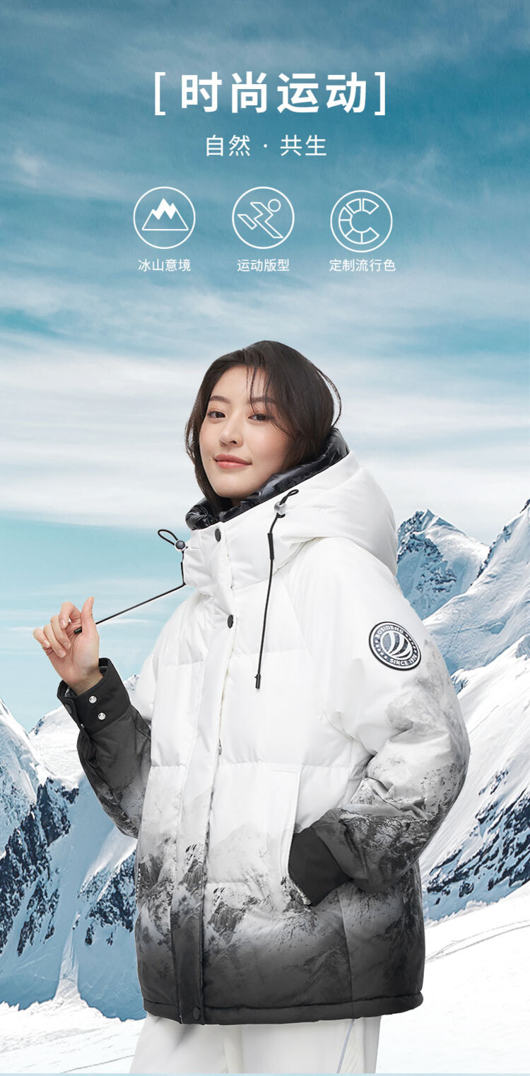 波司登冬季新款羽绒服女时尚运动系列撞色双连帽防风保暖90绒显瘦外套女